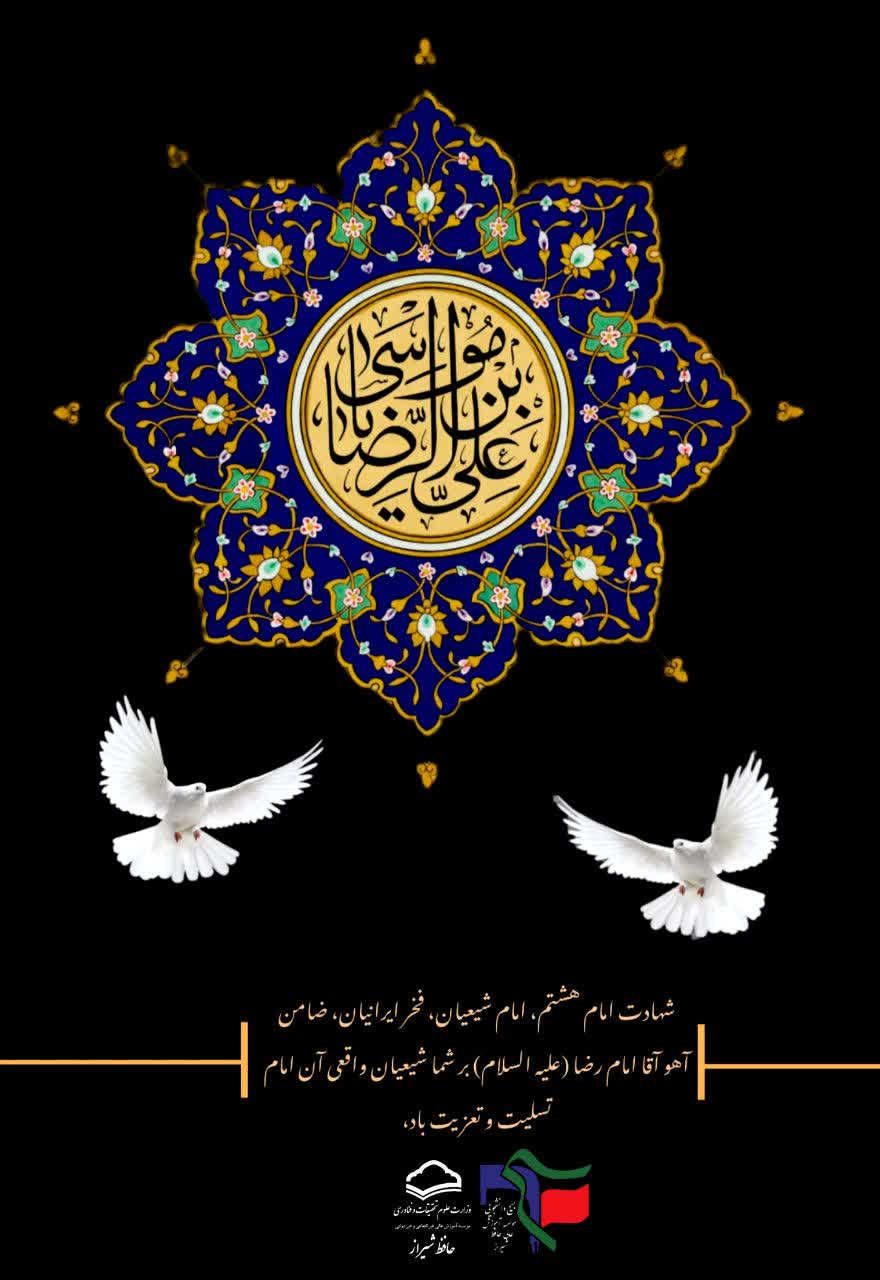 چیزی کم از بهشت ندارد هوای تو... 🖤 السلام علیک یا امام الرئوف 🖤 ✨ﺍﻟﻠَّﻬُﻢَّ ﺻَﻞِّ ﻋَﻠَﻰ ﻋَﻠِﻲِّ ﺑْﻦِ ﻣُﻮﺳَﻰ ﺍﻟﺮِّﺿَﺎ ﺍﻟْﻤُﺮْﺗَﻀَﻰ ﺍﻟْﺈِﻣَﺎﻡِ ﺍﻟﺘَّﻘِﻲِّ ﺍﻟﻨَّﻘِﻲِّ ﻭَ ﺣُﺠَّﺘِﻚَ ﻋَﻠَﻰ ﻣَﻦْ ﻓَﻮْﻕَ ﺍﻟْﺄَﺭْﺽِ ﻭَ ﻣَﻦْ ﺗَﺤْﺖَ ﺍﻟﺜَّﺮَﻯ ﺍﻟﺼِّﺪِّﻳﻖِ ﺍﻟﺸَّﻬِﻴﺪِ ﺻَﻠَﺎﺓً ﻛَﺜِﻴﺮَﺓً ﺗَﺎﻣَّﺔً ﺯَﺍﻛِﻴَﺔً ﻣُﺘَﻮَﺍﺻِﻠَﺔً ﻣُﺘَﻮَﺍﺗِﺮَﺓً ﻣُﺘَﺮَﺍﺩِﻓَﺔً ﻛَﺄَﻓْﻀَﻞِ ﻣَﺎ ﺻَﻠَّﻴْﺖَ ﻋَﻠَﻰ ﺃَﺣَﺪٍ ﻣِﻦْ ﺃَﻭْﻟِﻴَﺎﺋِﻚَ ▪️سالروز شهادت هشتمین اختر تابناک امامت، امام رضا «ع»بر به همه عاشقان کوی او تسلیت و تعزیت باد. بسیج دانشجویی موسسه آموزش عالی حافظ شیراز
