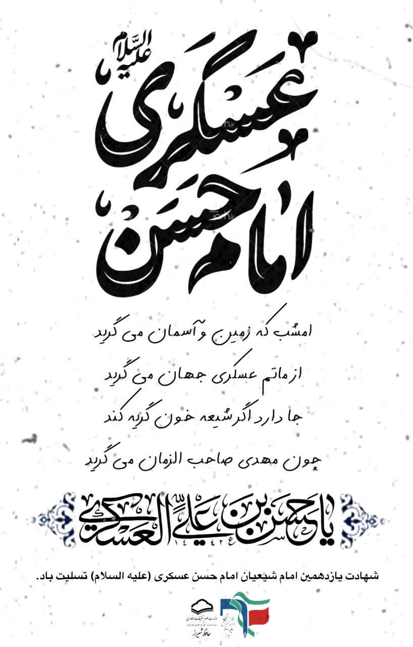 یاابالمهدی!! روضهی غربت تو حال عجیبی دارد... هرکه نامش حسن است ارث غریبی دارد🥀 ▪️شهادت اَبوحُجّةُالله، امام یازدهم شیعیان بر امام زمان«عج» و دوستداران وی تسلیت باد. بسیج دانشجویی موسسه آموزش عالی حافظ شیراز